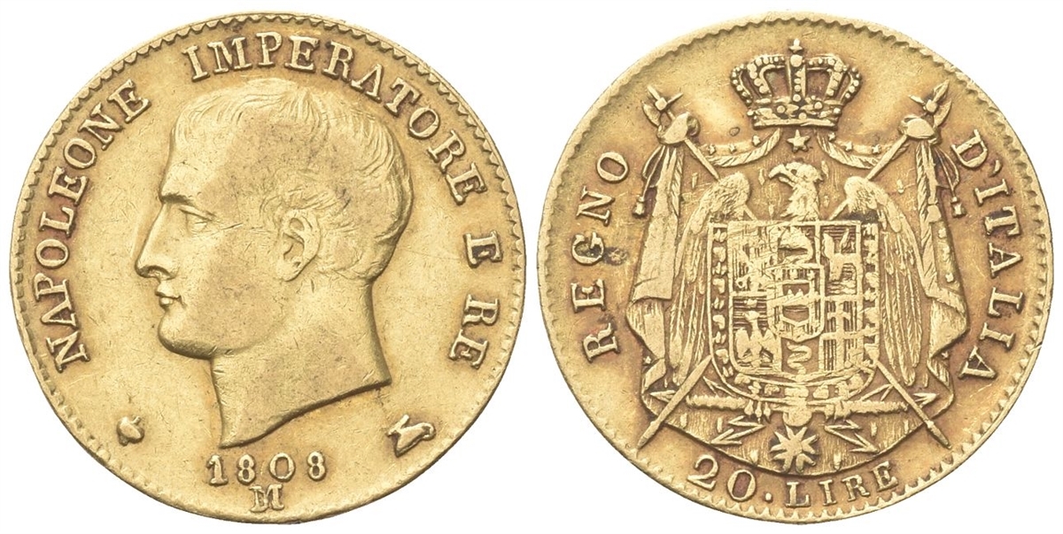 20 Lire 1808 puntali aguzzi, I Tipo.