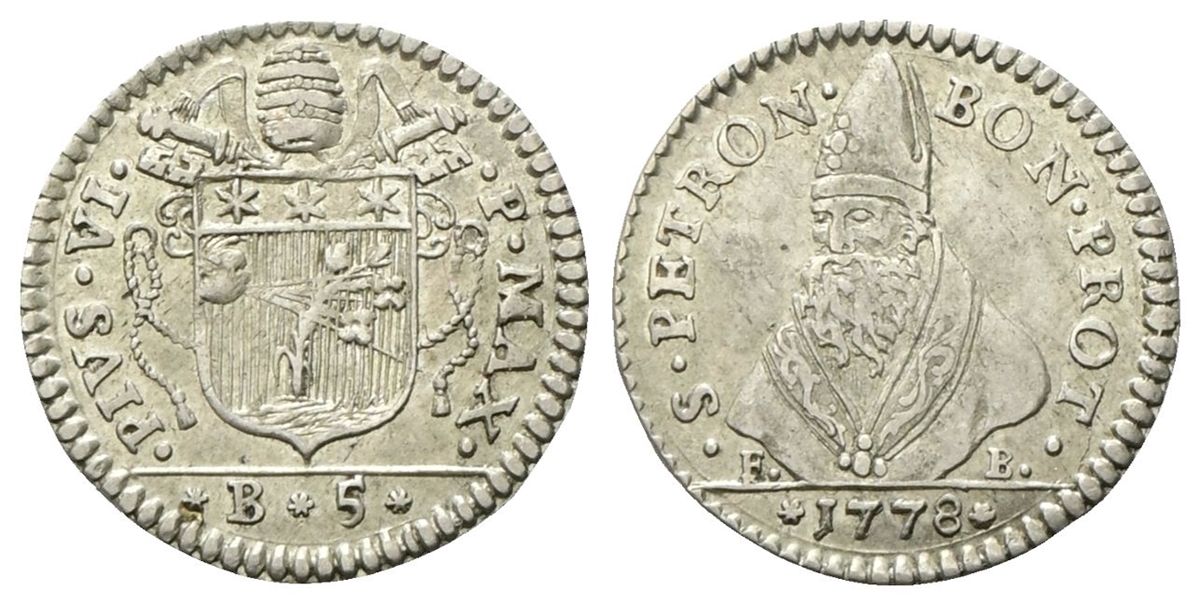 Pio VI (Giannangelo Braschi), 1775-1799. Carlino da 5 Baiocchi 1778.