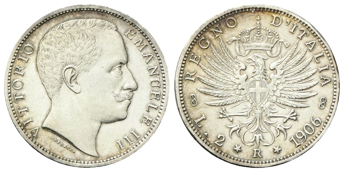 Vittorio Emanuele III, 1900-1943. 2 Lire 1906 Roma, Aquila Sabauda.