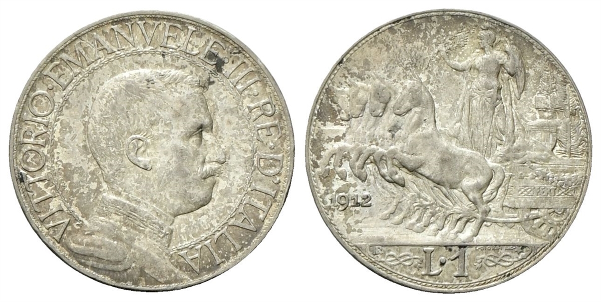Vittorio Emanuele III, 1900-1943. Lira 1912 Roma, Quadriga veloce.