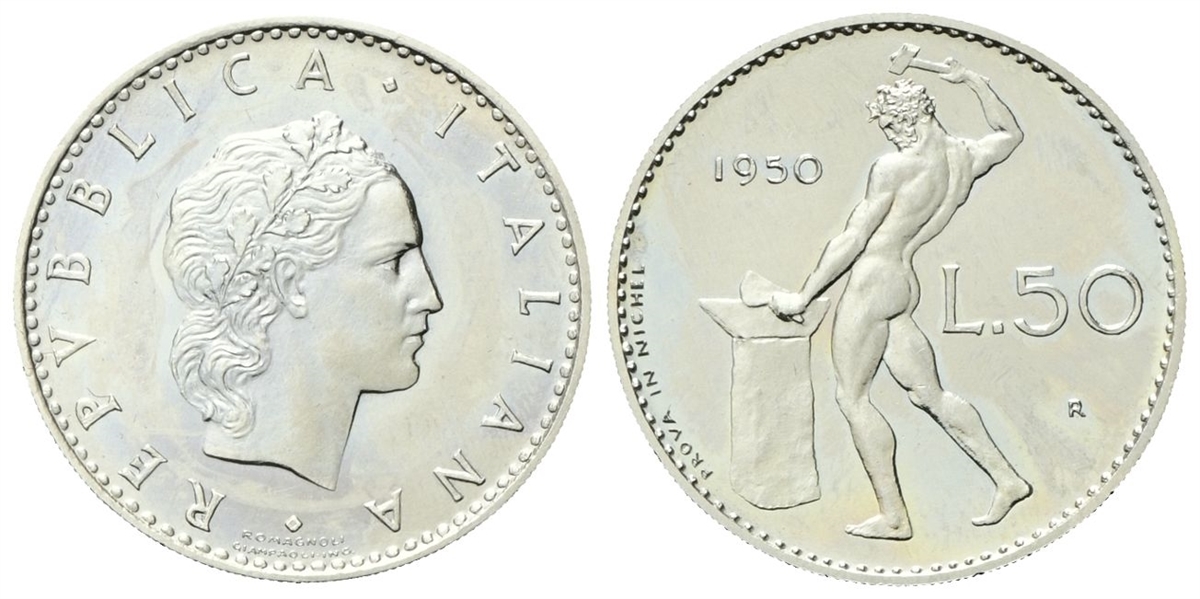 Roma - Repubblica Italiana, dal 1946. - 50 Lire 1950 PROVA in nichel.