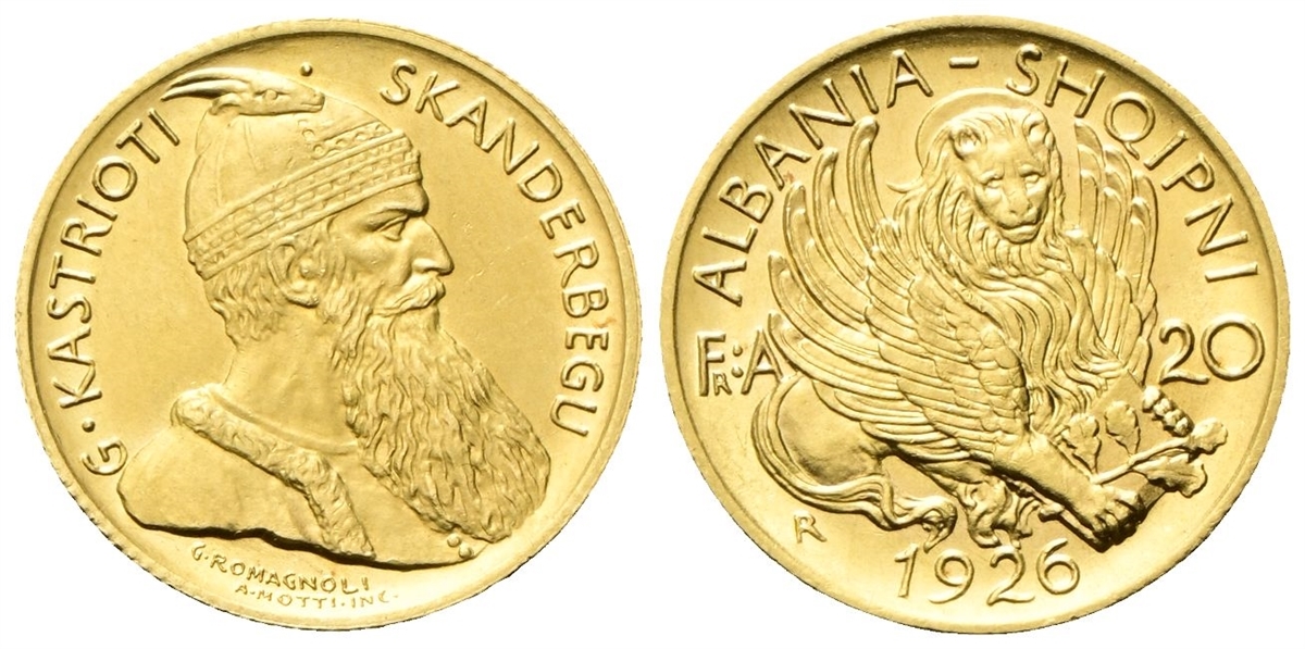 Dr. Busto di Skanderbeg a d. Rv. Leone di San Marco.
