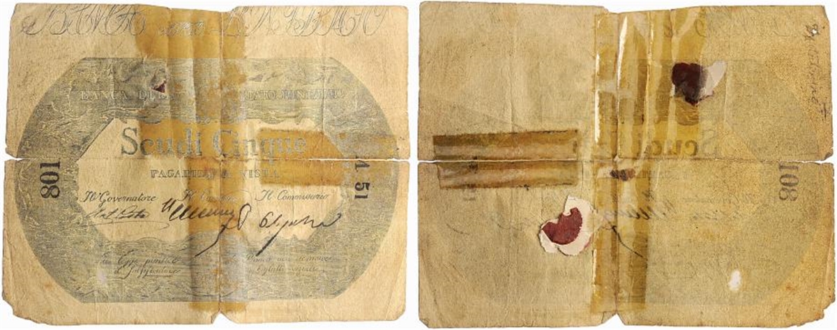 Boni del Tesoro in Sostituzione. Pio IX, 1846-870. Bono di Scudo Uno – 24.09.1849.