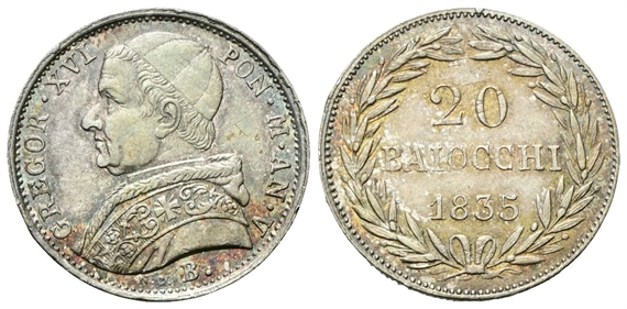 Gregorio XVI (Bartolomeo Alberto Cappellari), 1831-1846. 20 Baiocchi 1835 a. V.
