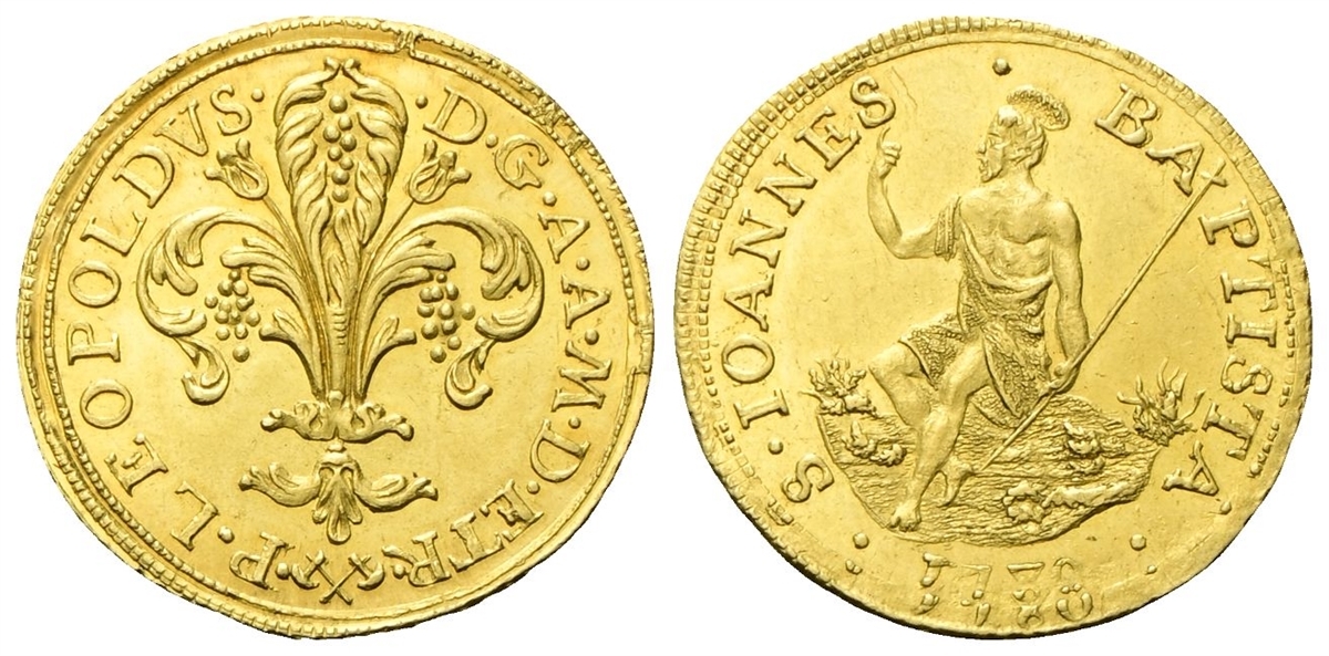 Pietro Leopoldo I d’Asburgo Lorena, 1765-1790. Zecchino o Fiorino d’oro detto Ruspo 1780 (data ribattuta).