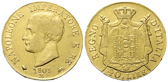 Napoleone I Re d’Italia, 1805-1814. 40 Lire 1808, I Tipo, puntali aguzzi.