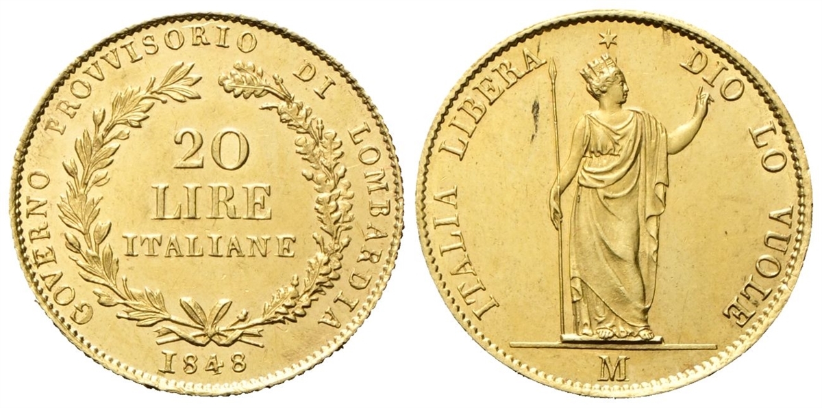 Governo Provvisorio di Lombardia, 1848. 20 Lire 1848.