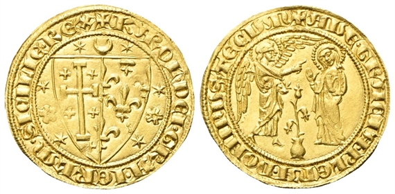 Nel 1278 Carlo I d'Angiò scelse la raffigurazione dell'Annunciazione sul Saluto d'oro introducendo un’iconografia tra le più belle della monetazione medievale italiana.