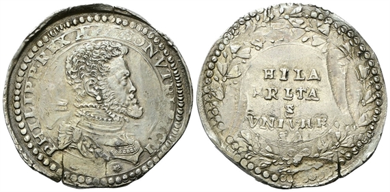 Dr. PHILIPP• REX ARAGON •VTRI SICI. Busto corazzato a d., con drappeggio sulla spalla s.; dietro la nuca, GR/VP. Rv. HILA / RITA / S / VNIVER / SA. Iscrizione disposta cinque righe, entro corona di foglie.