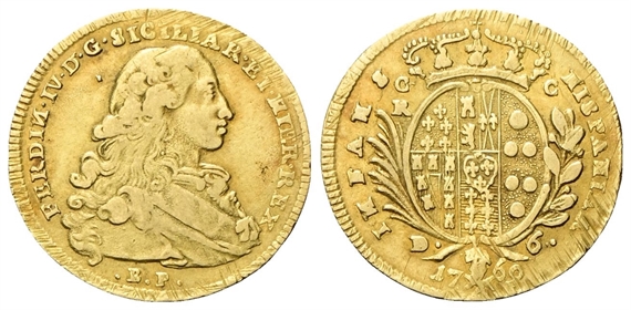 Dr. FERDIN• IV• D• G• SICILIAR• ET• HIER• REX. Busto giovanile a d.; sotto, B P. Rv. HISPANIAR - INFANS. Stemma ovale coronato; ai lati, C/R - C; sotto, 17 - 69.
