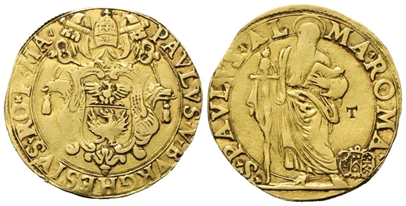 Moneta non in eccelsa conservazione ma di esimia rarità. San Paolo, in questa moneta in oro, viene rappresentato con una iconografia differente dalle solite, più armoniosa.