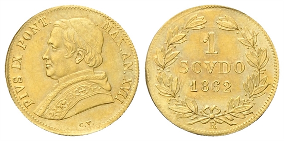 Pio IX (Giovanni Maria Mastai Ferretti), 1846-1878. Scudo 1862 a. XVII.