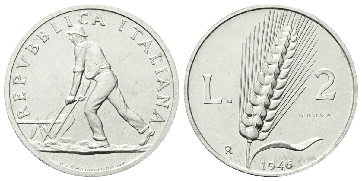 Repubblica Italiana, dal 1946. 2 Lire 1946 PROVA.