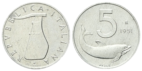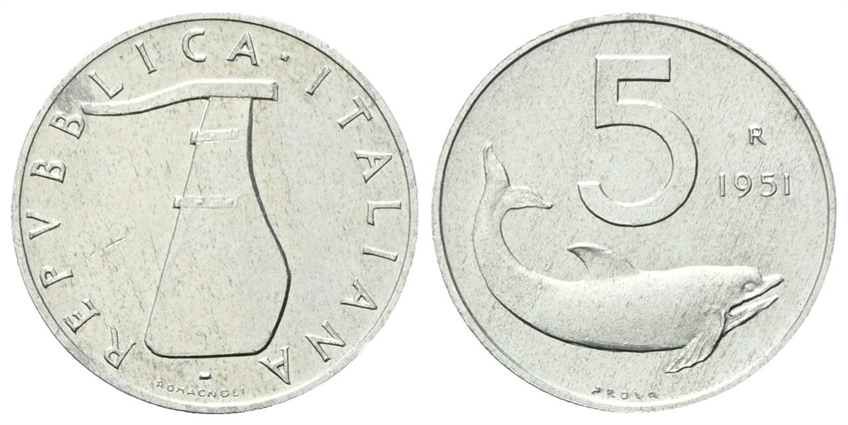 Repubblica Italiana, dal 1946. 5 Lire 1951 PROVA.