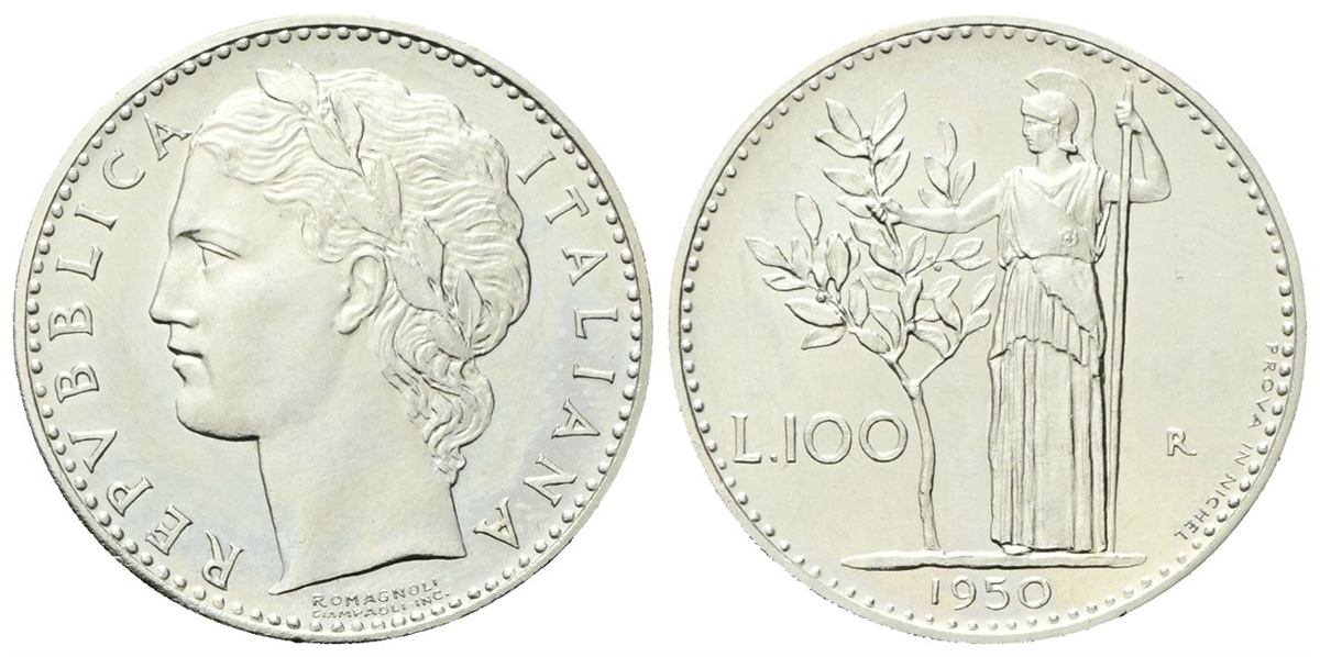 Repubblica Italiana, dal 1946. 100 Lire 1950 PROVA in nichel.