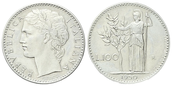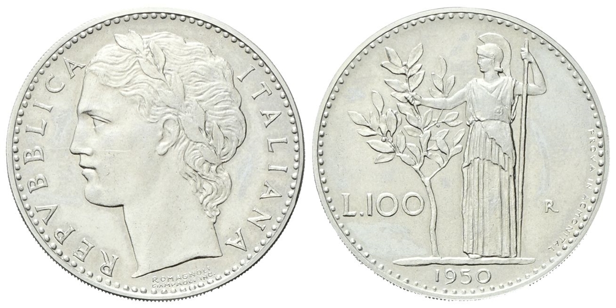 Repubblica Italiana, dal 1946. 100 Lire 1950 PROVA in acmonital.