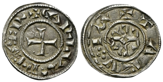 Dr. +CARLVS REX FR. Coce patente. Rv. + TARV (quattro globetti) IS. Monogramma entro cerchio perlinato.