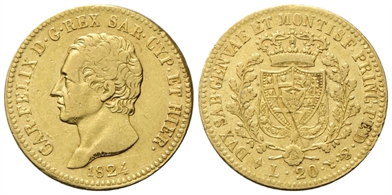 Carlo Felice, 1821-1831. 20 Lire 1824 Torino.