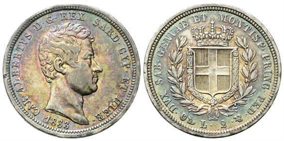Carlo Alberto, 1831-1849. 2 Lire 1833 Genova.