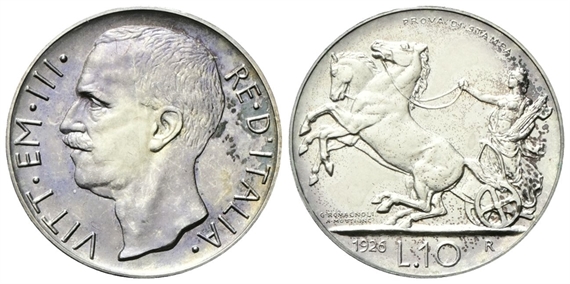Vittorio Emanuele III, 1900-1943. 10 Lire 1926 PROVA DI STAMPA.