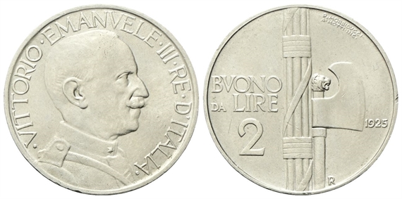 Vittorio Emanuele III, 1900-1943. Buono da 2 Lire 1925 Roma, Fascio.