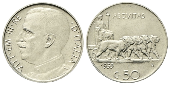 Vittorio Emanuele III, 1900-1943. 50 Centesimi 1935 Roma, Leoni, bordo Rigato.