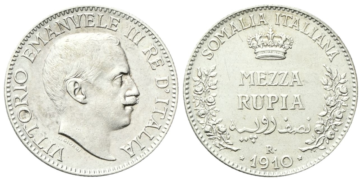 Vittorio Emanuele III, 1909-1925. Mezza Rupia 1910 Roma.