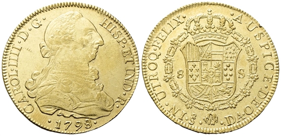Carlo IV di Borbone, Re di Spagna, 1788-1808. 8 Escudos 1798 So - DA, Santiago.