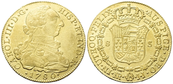 Carlo III, 1759-1788. 8 Escudos 1780 NR - JJ, Bogotà.