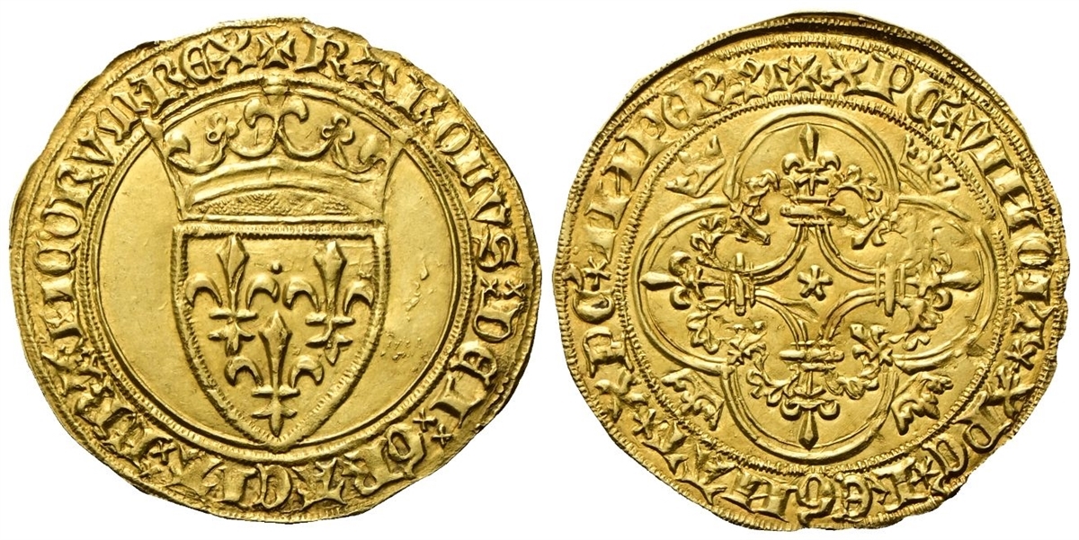 Carlo VI di Valois, 1380-1422. Ecu d’or à la couronne 1385, 1a emissione.