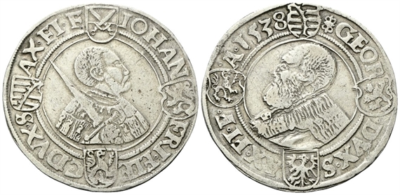 Sachsen-Ernestine. Johann Fredrich I e Georg, 1532-1539. Tallero 1538.