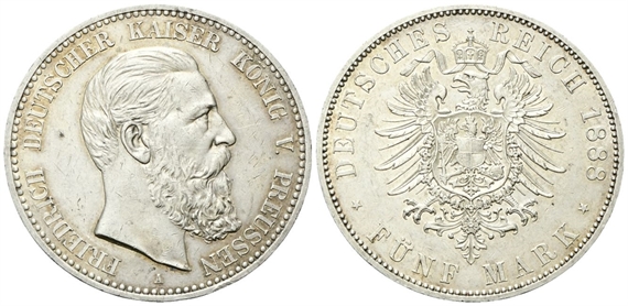 Prussia. Friedrich III, 1888. 5 Marchi 1888.
