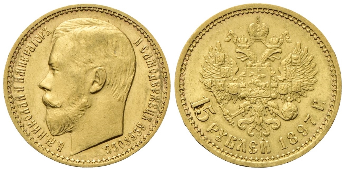 Nicola II, 1894-1917. 15 Rubli 1897 AΓ.