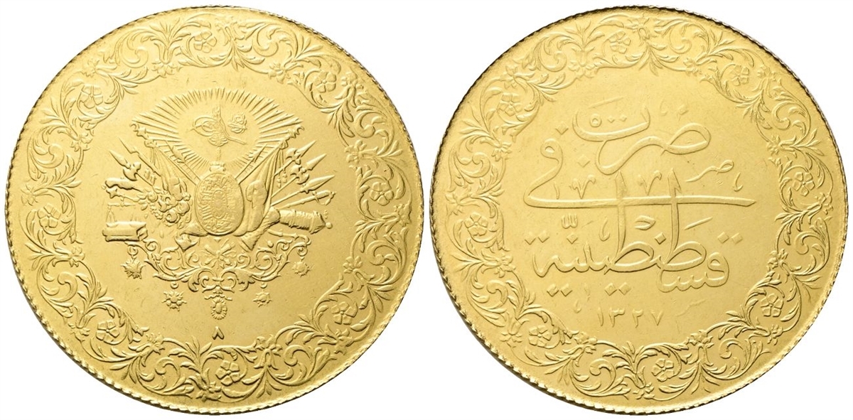 Mehmed V Reşâd, 1909-1918. 500 Kurush, Costantinopoli AH 1327 (1916).
