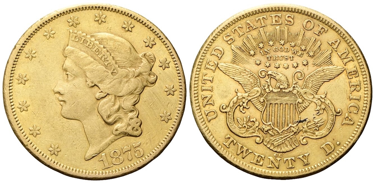 Federazione. 20 Dollari 1875 CC, zecca di Carson City.