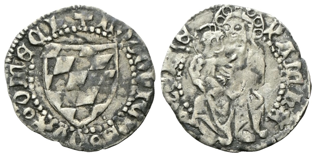 Dr. + LODOVICVS°DVX°D° TECh. Stemma del patriarca in scudo. Rv. PATHA - AQVILE. La Beata Vergine, nimbata, seduta, tiene con la d. il Bimbo, con nimbo crociato.