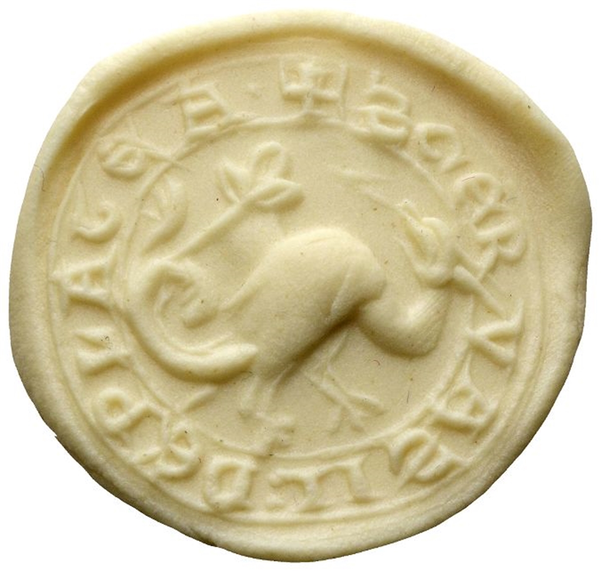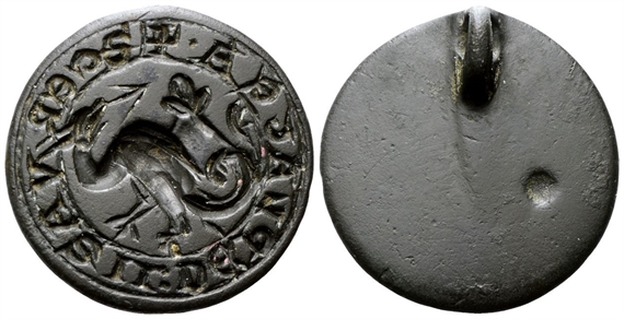 Dr. + S GERVAS IL• DE PLAtEA•. Drago con testa trafitta da una freccia.