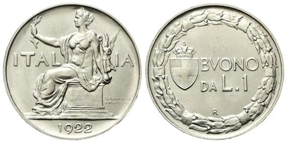 Vittorio Emanuele III, 1900-1943. Buono da 1 Lira 1922 Roma, Italia Seduta.