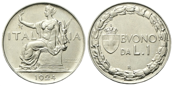 Vittorio Emanuele III, 1900-1943. Buono da 1 Lira 1924 Roma, Italia Seduta.