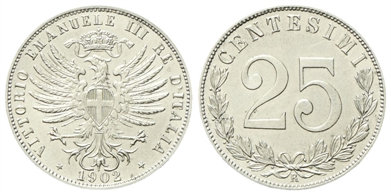 Vittorio Emanuele III, 1900-1943. 25 Centesimi 1902 Roma, Valore.