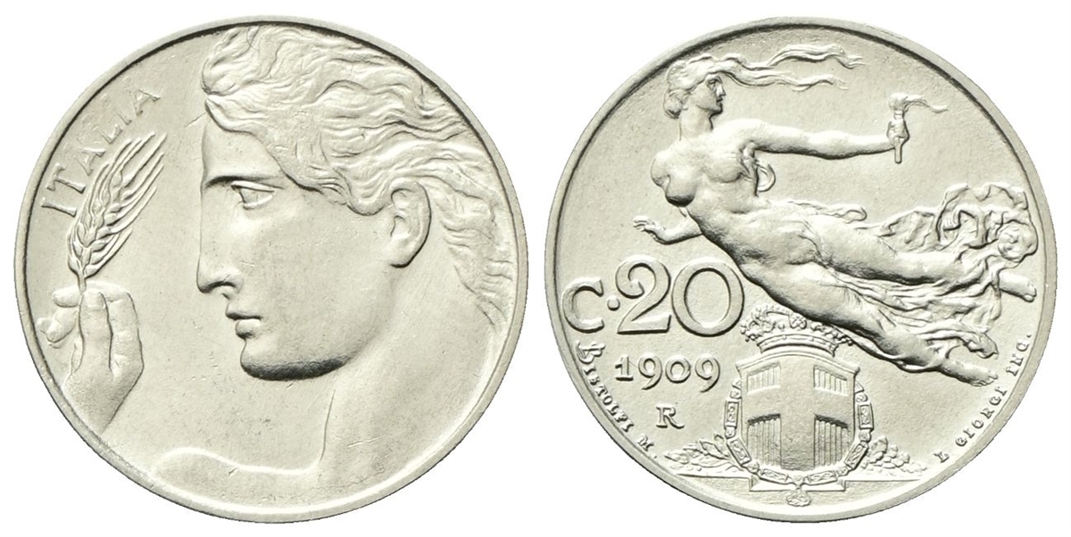 Vittorio Emanuele III, 1900-1943. 20 Centesimi 1909 Roma, Libertà Librata.