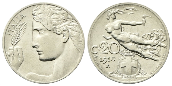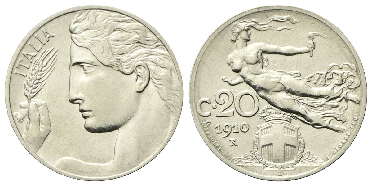 Vittorio Emanuele III, 1900-1943. 20 Centesimi 1910 Roma, Libertà Librata.