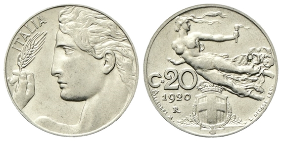 Vittorio Emanuele III, 1900-1943. 20 Centesimi 1920 Roma, Libertà Librata.