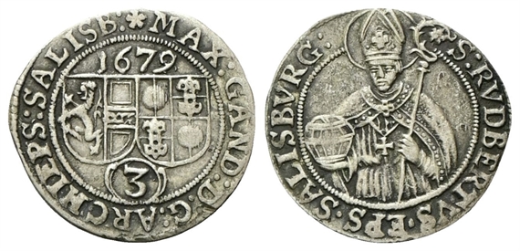 Salisburgo. Erzbistum. Max Gandolph von Kuenburg, 1668-1687. 3 Kreuzer 1679.