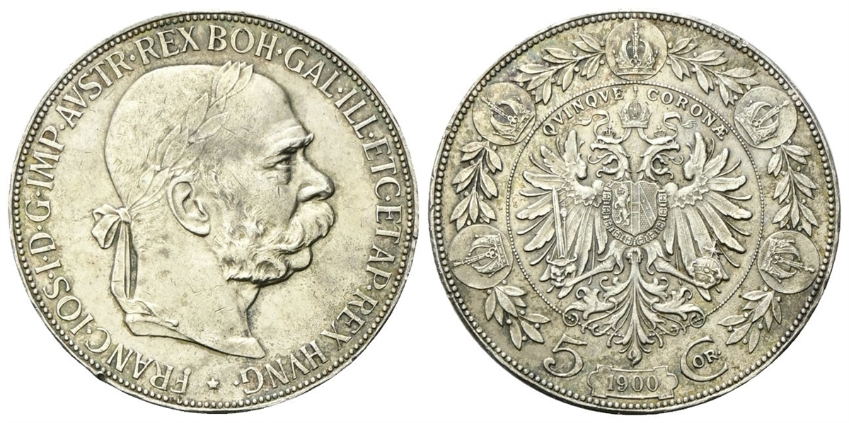 Francesco Giuseppe I d’Asburgo Lorena, 1848-1916. 5 Corona 1900.