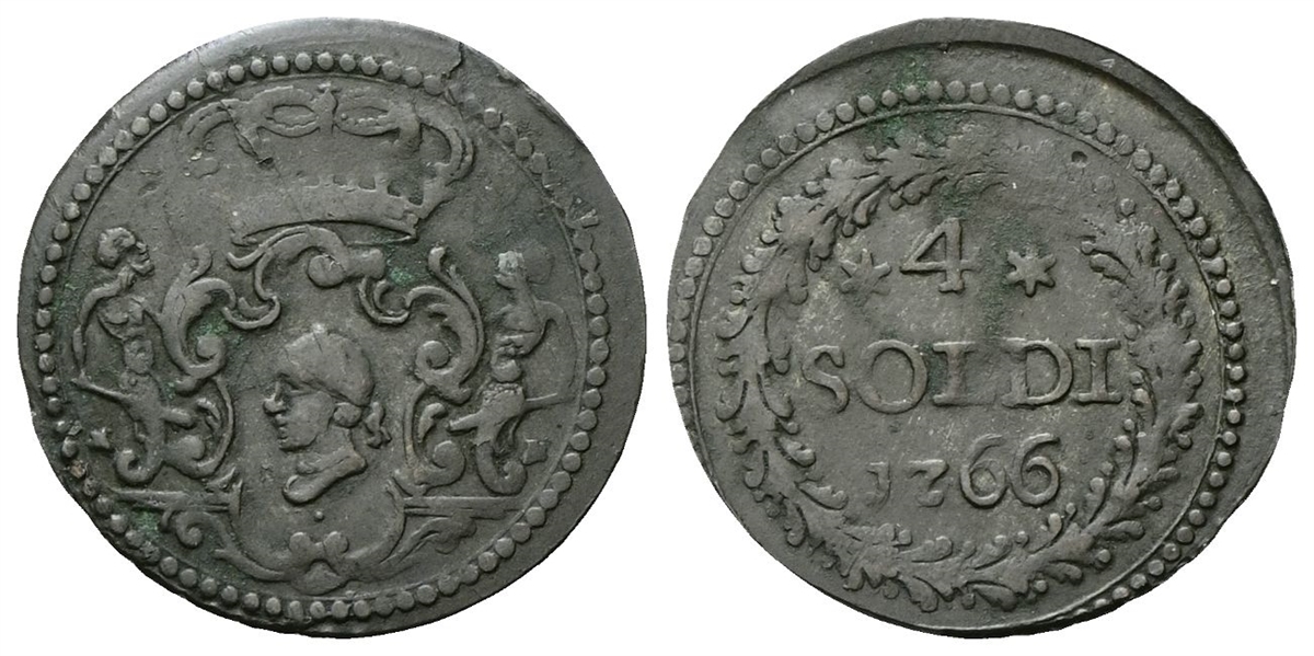 Pasquale Paoli, 1762-1768. 4 Soldi 1766.
