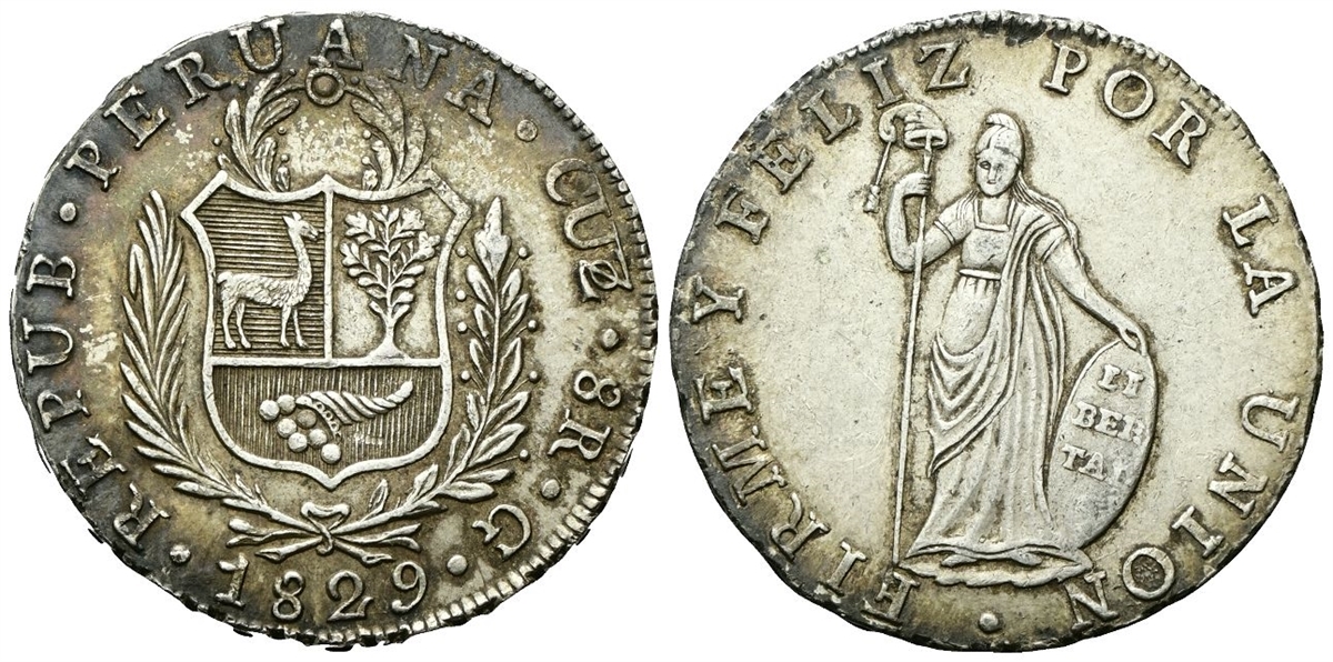 Repubblica, dal 1821. 8 Reales 1829 G, zecca di Cuzco.