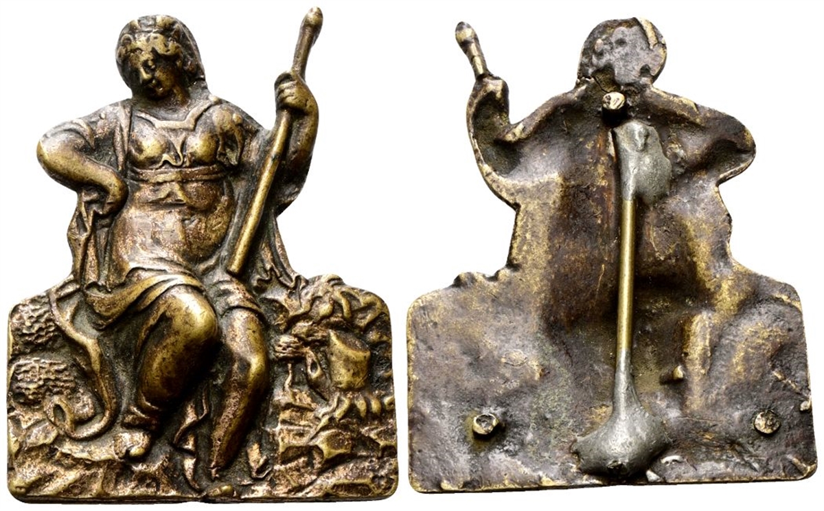 XVI-XVII secolo. Placchetta decorativa con divinità femminile classica.
