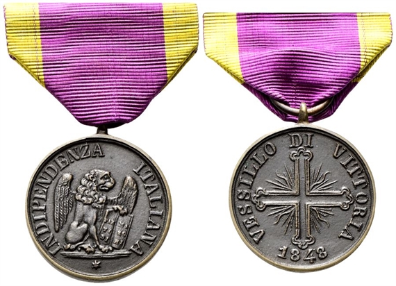 Governo Provvisorio di Venezia, 1848-1849. Medaglia 1848, con appiccagnolo, Liberazione di Venezia - Vessillo di Vittoria I Tipo.