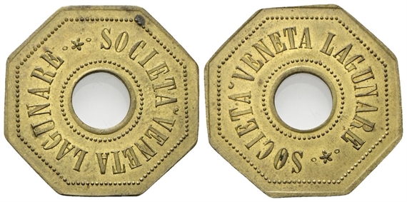 Gettone ottagonale 1890 della Società Veneta Lagunare.
